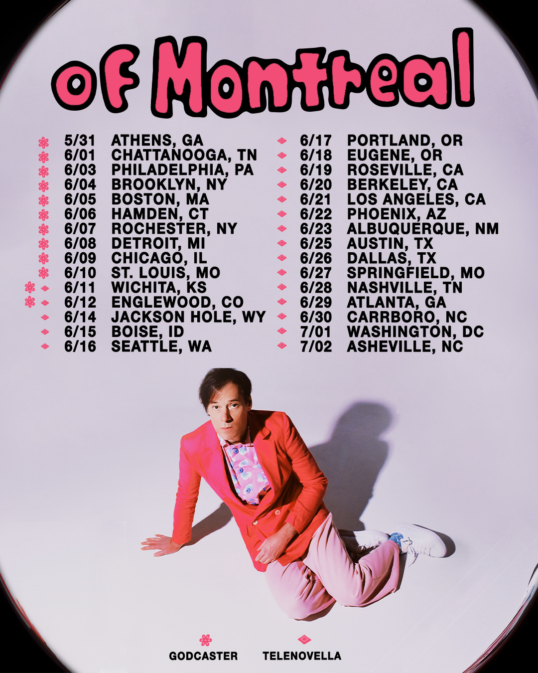 Across three pre-release singles, Kevin Barnes guides of Montreal through starkly contrasted sonic landscapes, linked dreamily by something like a cosmic fishing line, as their new album Lady On The Cusp morphs and molds into a purposefully kaleidoscopic fantasy. This final transmission from Athens, GA is a rapturous synthesis that combines a keen reckoning with the past with hopeful glimpses of the future as Kevin and their partner, Christina Schneider (Locate S,1), leave the ever-suffocating conservatism of the American south to live amongst the snowy peaks and progressive politics of southern Vermont.
